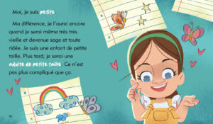 On a particulièrement aimé que cette œuvre soit portée par l’Association québécoise des personnes de petite taille (AQPPT). Saviez-vous que cette association célèbre d’ailleurs ses 50 ans cette année ? Depuis 1976, ils font un travail exceptionnel pour l’inclusion, le soutien aux familles et la lutte contre les préjugés au Québec. Avoir accès à un livre jeunesse d’ici qui offre une représentation aussi authentique et respectueuse, c’est assez rare et c’est tellement précieux. C’est honnêtement le support parfait pour ouvrir le dialogue avec nos cocos sur les différences, qu’elles soient visibles ou invisibles, et pour les aider à bâtir une estime de soi solide.
